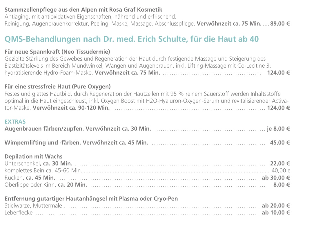 Ich arbeite erfolgreich mit einer Mischung aus Akupressur, Entspannungsmassage und Energiebehandlung. Eine besondere Kombination, die das Gewebe stimuliert, sämtliche Muskeln lockert und den Körper entschlackt. Gesichtsbehandlungen, spezialisiert auf Anti-Aging, Notox und Akne. Ich arbeite mit dem Luxus-Kosmetikprodukten von QMS Medicosmetics, IS Clinical und Instytutum.